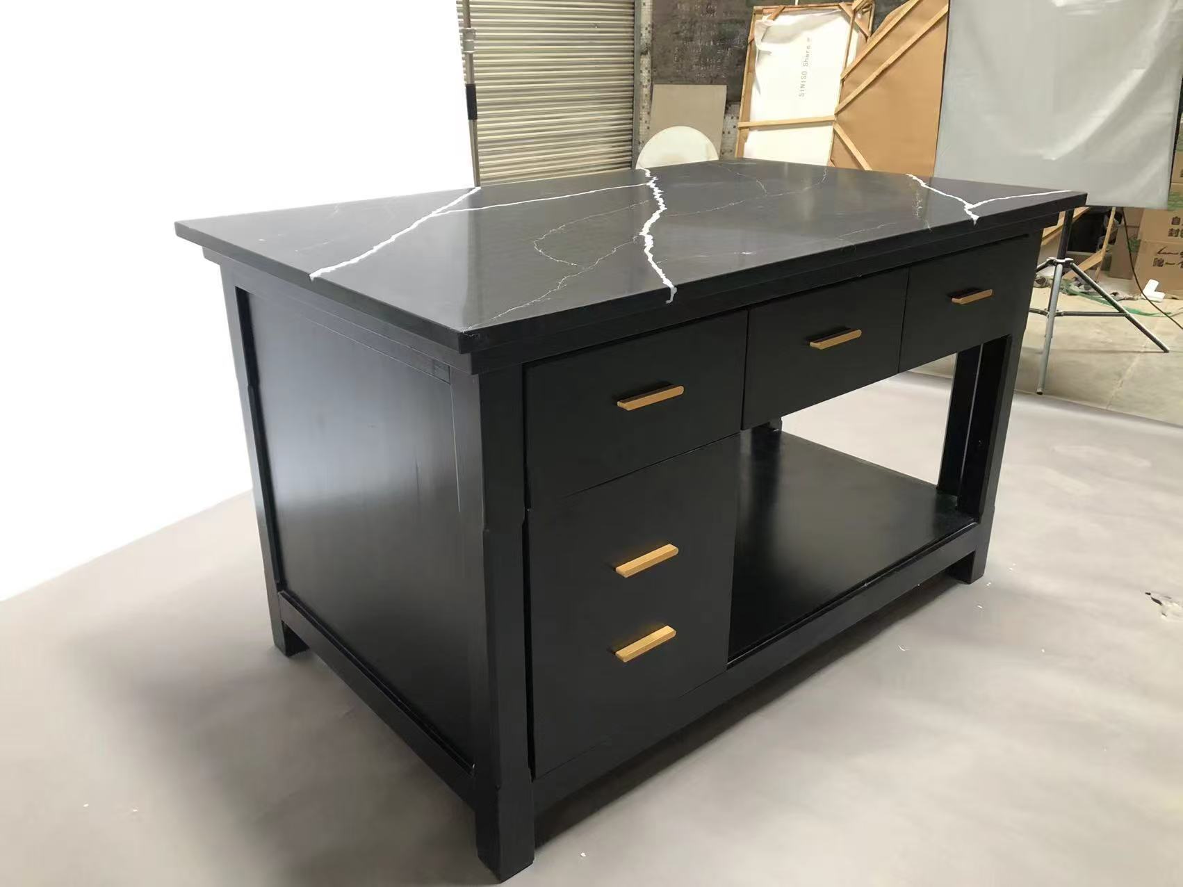 - Q: Is the stone countertop of this cabinet high temperature resistant and scratch resistant?A: It adopts high-quality black marble-pattern stone, which is high temperature resistant, scratch-resistant and oil-proof. There is no problem with normal cooking and placing hot tableware. Daily cleaning can be done by gently wiping with a damp cloth.