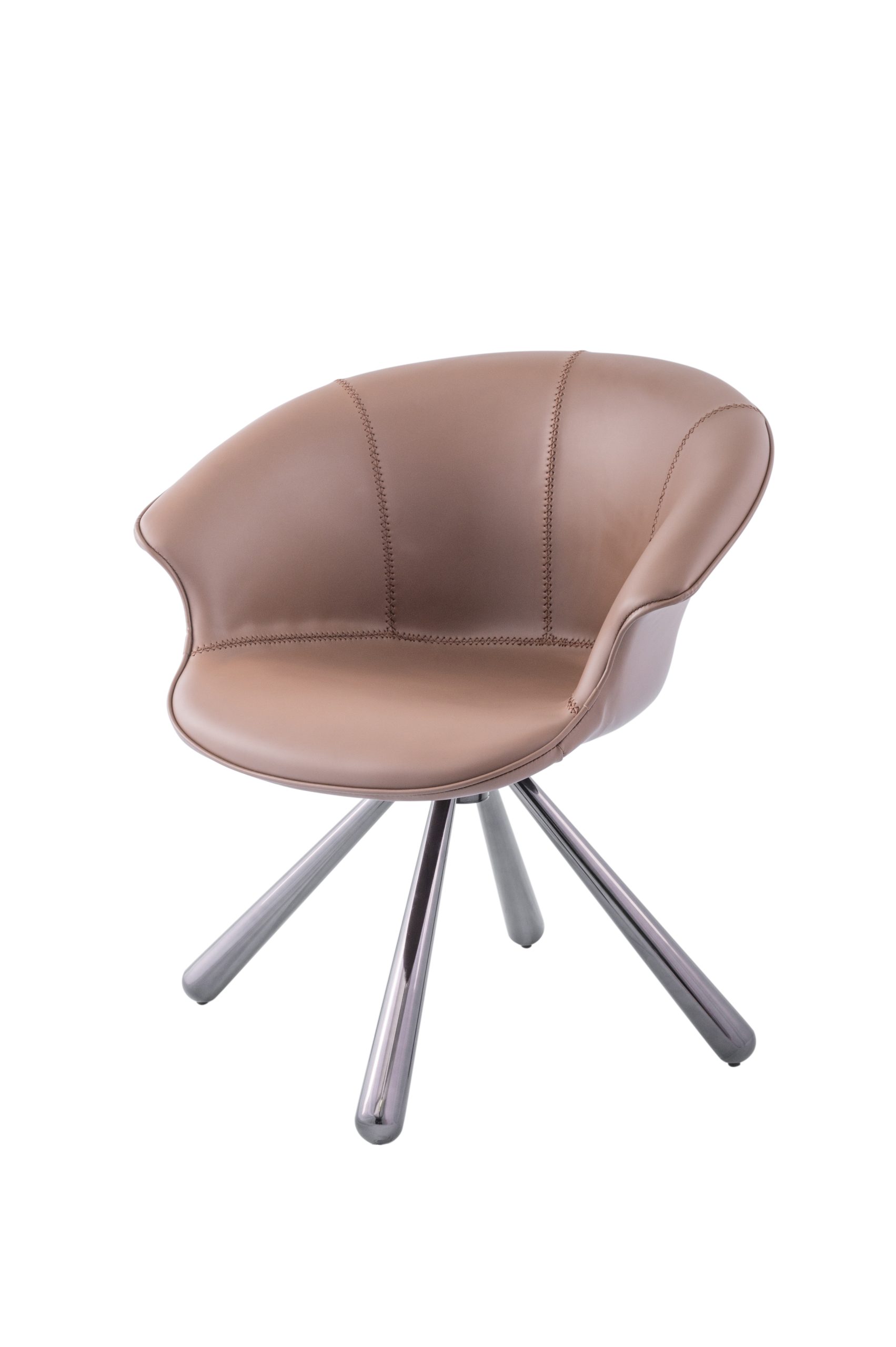 The rust-resistant stainless steel legs swivel 360° for easy movement, and their slim design enhances the chair’s minimalist Nordic aesthetic.