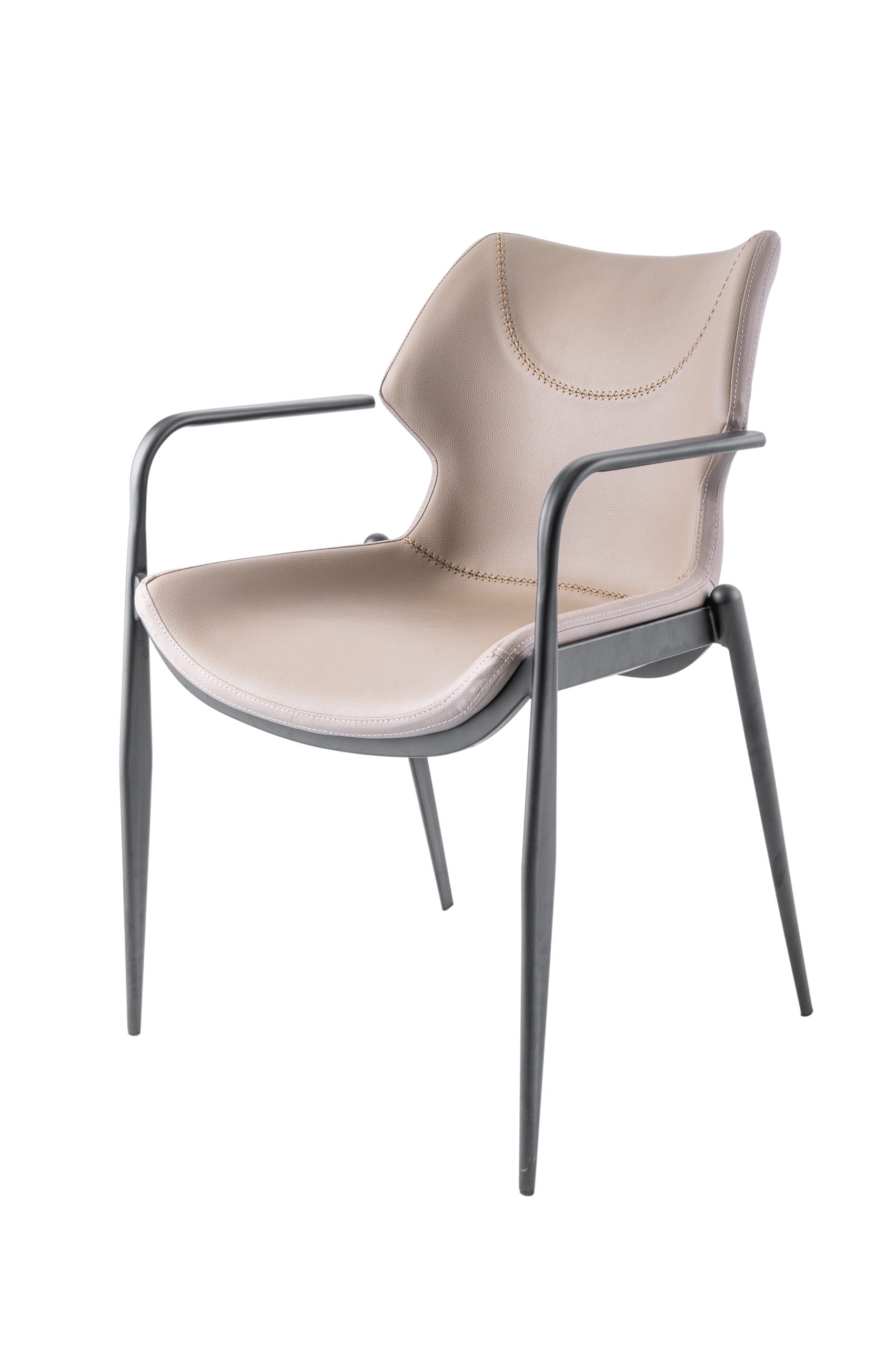 elegant black/neutral leather living room chair from Guangzhou KONMA Catering Furniture Factory (20-year industry expertise). It features soft stain-resistant leather upholstery (beige/white options), sleek curved armrests, and sturdy matte metal legs—tailored for modern living rooms, high-end restaurant private rooms, boutique hotel lounges and upscale café seating areas. The chair blends sophisticated aesthetic appeal, ergonomic long-seating comfort, and commercial-grade durability, perfectly matching the elegant vibe of residential & catering venues while meeting daily use needs.