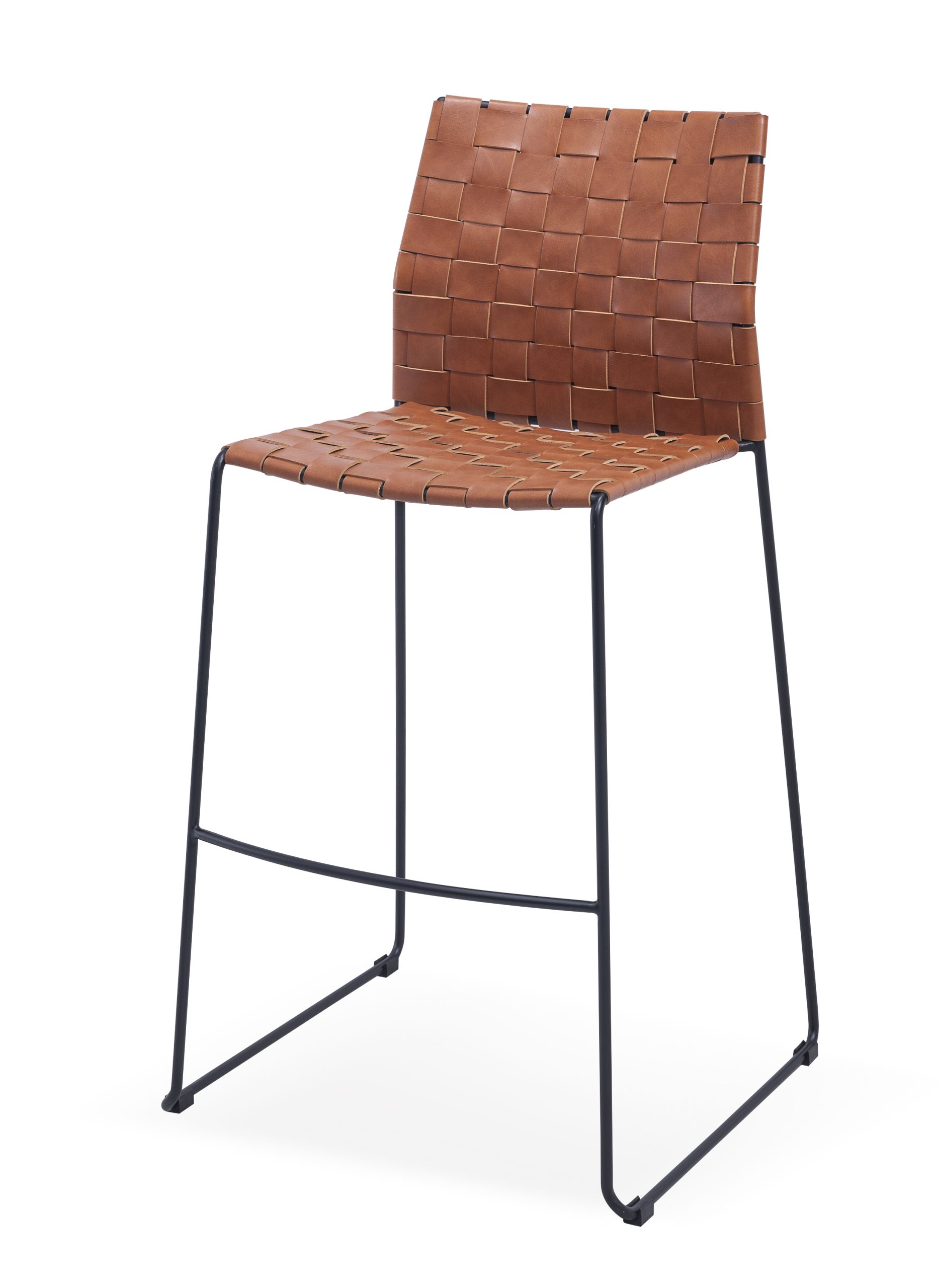 Our Fashion Stainless Steel Soft Woven Leather Bar Stools are designed with modern minimalist style as the core language. It uses handmade soft woven leather craft to create a breathable and comfortable backrest and seat, paired with a matte black stainless steel metal frame, perfectly integrating natural texture and industrial style design, balancing aesthetic appeal and practicality. The woven structure fits the curve of the human body, providing comfortable support while ensuring breathability, no stuffiness or fatigue after long sitting. This bar stool is suitable for restaurants, hotel bars, coffee bars, high-end leisure spaces, home bars and other scenes, creating a relaxed and advanced atmosphere for the space with a simple and personalized design.