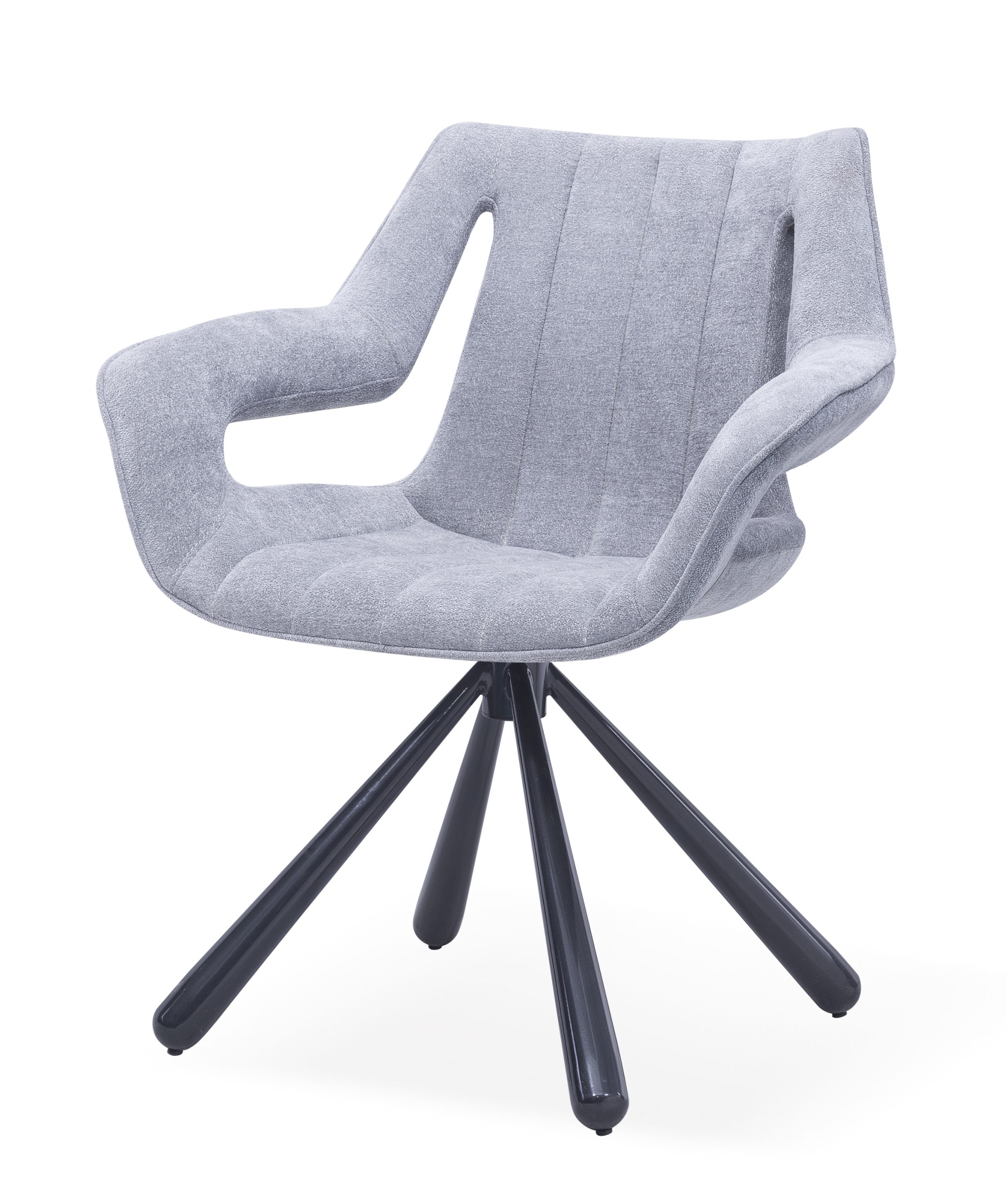 Our Modern Luxury Fabric Swivel Dining Chair is designed with modern minimalist luxury style as the core language. We use skin-friendly and breathable high-quality fabric to create an integrated armrest backrest and seat cushion, paired with vertical quilting craft to enhance delicacy, supplemented by a matte black stainless steel five-star swivel base, perfectly integrating comfortable experience and practical functions. The backrest and armrests fit the curve of the human waist, back and arms, following ergonomic principles to provide all-round comfortable support for long-time sitting scenarios such as restaurants and offices. This dining chair is suitable for various scenarios such as high-end restaurants, hotel dining areas, office reception areas, villa home dining rooms, etc., creating a modern and advanced atmosphere for the space with simple and elegant design.