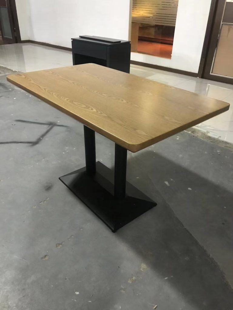 This product is a plywood pasted solid wood veneer imitation solid wood dining table, which highly restores the texture and touch of solid wood. It supports customization of various solid wood grains, colors and sizes, with high cost performance. It is suitable for daily dining scenarios of various chain catering brands, and is an optimal dining table that combines beauty, practicality and cost.