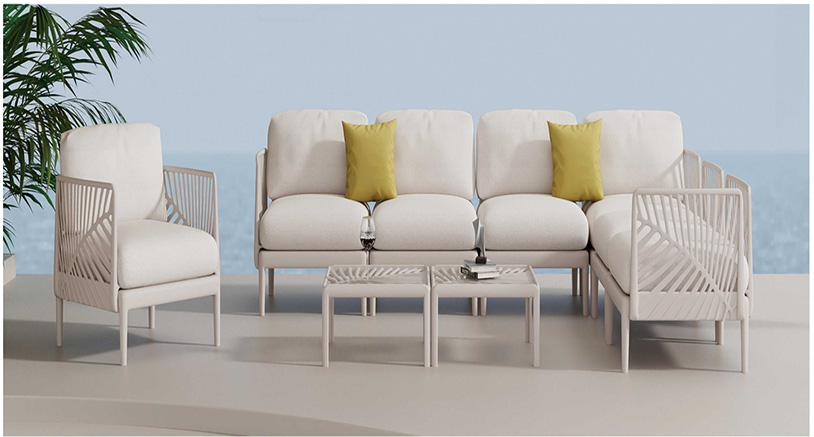 - Set Configuration: 6-person sets (4 chairs + 1 sofa + 1 dining table) or 2-person bistro sets (for small balcony terraces).